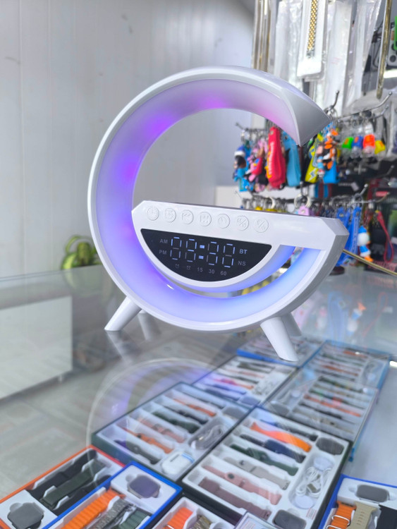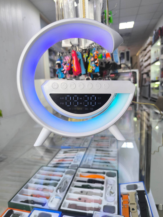گجت موردنظر 4 کاره( شارژر، بلندگو، ساعت کوکی، چراغ خواب)،دارای اسپیکر بلوتوثی برای پخش موزیک با کیفیت و بیس عالی به همراه رقص نور بسیار زیبا و همچنین دارای نمایشگر دیجیتالی ساعت و امکان کوک و آلارم ساعت هست که قابلیت های زیاد و جذابی با توجه به عملکردهایی که ذکر شد از قبیل ،چراغ خواب به همراه رقص نور و تنظیم رنگ و شدت نور به طور دلخواه با وجود سنسور هوشمند نور محیط،امکان کنترل از طریق گوشی و نرم افزار، فست شارژ، . ولتاژ ورودی 12ولت/2.5آمپر ///خروجی بیسیم 5وات،7.5 وات،10وات و 15 وات ///قدرت صوتی بلوتوث 3 وات////256 حالت رنگ/// فاصله انتقال 2 تا 6 میلی متر///راندمان شارژ 75% ///فرکانس کاری 100-205کیلو هرتز///سایز 22.5x8.2x23سانتی متر///وزن حدود 500گرم