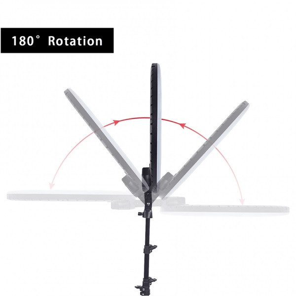 رینگ لایت RL-21 54cm در دسته رینگ لایت های حرفه ای سایز بزرگ می باشد. یکی از مزیت های این رینگ لایت نسبت به سایر رینگ لایت ها دمای نور (کلوین) گسترده تر میباشد. به طوری که بازه نوری این دستگاه از کلوین 2700 تا کلوین 6500 قابل تنظیم بوده و دمای نوری گسترده تر را دراختیار کاربر قرار میدهد. رینگ لایت RL-21 54cm ساخته شده از ABS که مقاومت بالایی نسبت به ضربه دارد و دستگاه رو از ضربات احتمالی و افتادن محافظت می کند. تکنولوژی ساخت : تکنولوژی پیشرفته ساخت لامپ های این دستگاه SMD POWER SAVING میباشد که قدرت نوردهی بالا با مصرف برق کمتر نسبت به سایر مدل ها را به ارمغان اورده است . پشتیبانی از 2 پورت USB در طراحی این دستگاه این امکان را فراهم نموده تا در حین فیلمبرداری های طولانی مدت دیگر نگران شارژ تلفن همراه خود نباشید. رینگ لایت RL-21 54cm دارای 2 دیمر در پنل جلویی دستگاه میباشد که امکان دسترسی به تنظیمات حین فیلمبرداری رو برای کاربر آسان نموده است . وجود ریموت کنترل با برد بیش از 5 متر از دیگر امکانات این دستگاه میباشپ که کنترل دستگاه را از راه دور فراهم می سازد. در طراحی این دستگاه از 3 هولدر موبایل در حلقه داخلی رینگ لایت استفاده شده است . هلدر موبایلی : وجود 3 هولدر این امکان را به شما میدهد که بتوانید به طور همزمان 3 تلفن همراه روی دستگاه نصب کنید و بتوانید هم زمان از 3 شبکه اجتماعی یا 3 پیج مختلف لایو زنده داشته باشید که برای فعالان در حوزه اموزش و سالن های زیبایی و … بسیار کاربردی می باشد. کیف مخصوص : کیف مخصوص حمل رینگ لایت از دیگر متعلقات این دستگاه می باشد . که حمل و نقل آن را آسان نموده است . رینگ لایت RL-21 54cm یک انتخاب خوب و حرفه ای برای سالن های زیبایی ، آتلیه های عکاسی و فعالان در حوزه زیبایی و تولید محتوا می باشد.